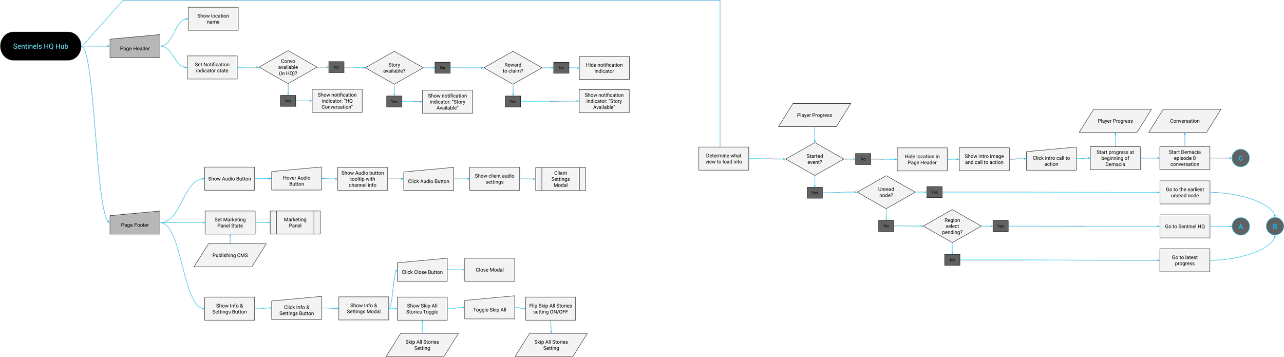 // The digital experience progressed through the Rise of the Sentinels story via chapters released weekly. Each week, players explored new regions, gather recruits, and played games to unlock rewards. I made sure the usability, style cues and animations compliment the ornate shape language into a seamless navigation experience.