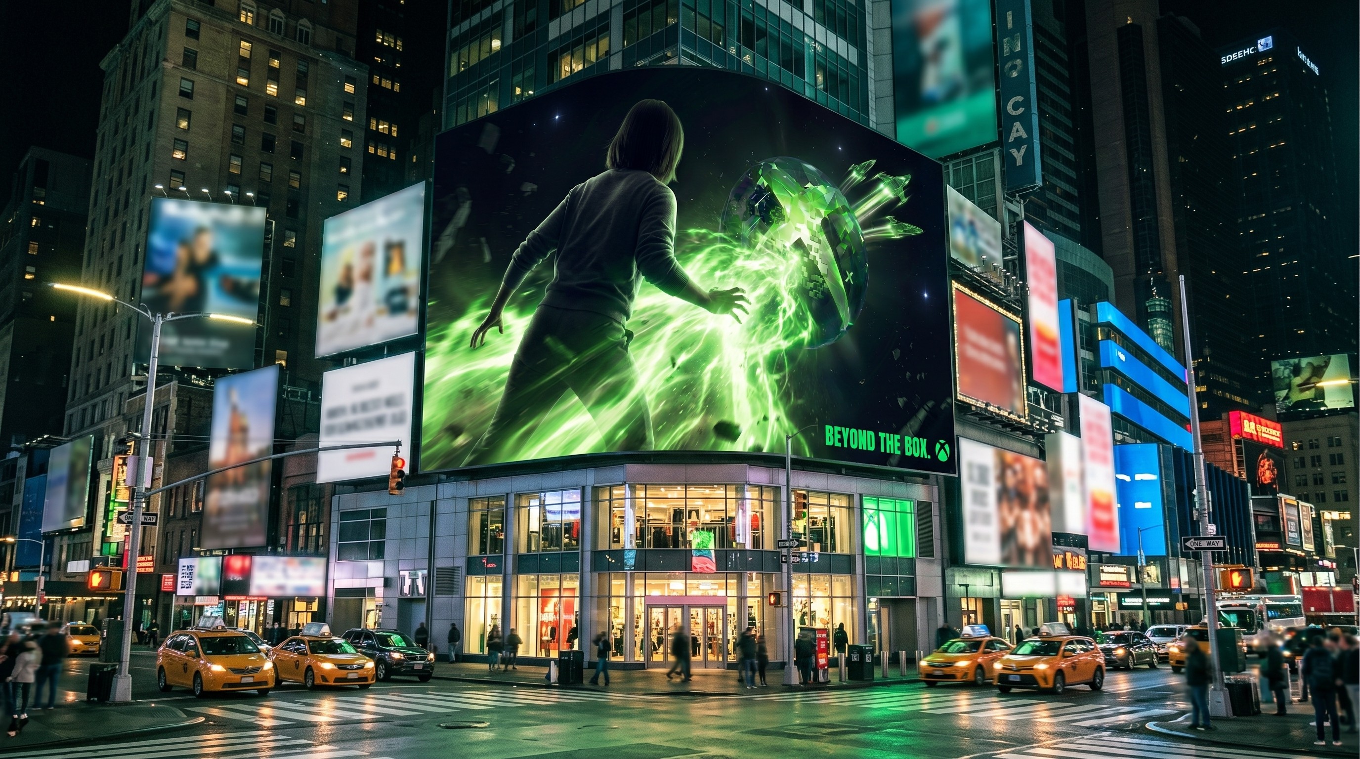 The resulting ecosystem for this conceptual pitch envisioned the transition of Xbox from a living room device into a global cultural layer. The solution utilized high contrast carbon fiber textures and luminous green wireframes to bridge the gap between technical power and human imagination. This systematic approach culminated in high impact visual concepts like a Las Vegas Sphere takeover which explored turning the physical city into part of the Xbox digital grid. By refining the glitch protocol motion language and industrial grade UI animation the project established a cohesive mental environment where Xbox is represented not as a product but as an environment to inhabit.