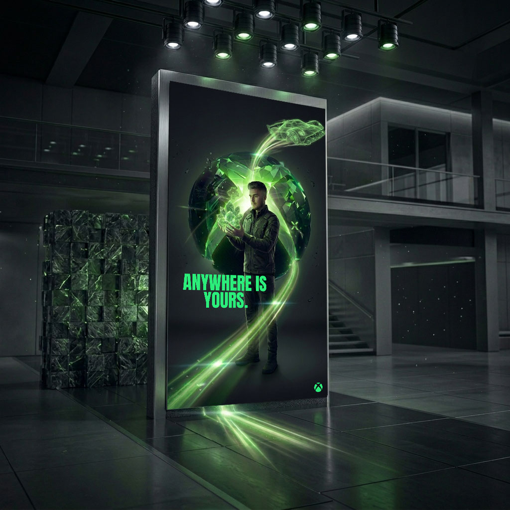 For two decades the Xbox brand was defined by its physical footprint the console. As the industry pivoted toward cloud native gaming and cross platform accessibility this hardware centric identity became a bottleneck. The challenge for this conceptual pitch was to decouple the brand from the box and envision an expansive digital environment. The goal was to develop a visual framework that could unify the brand across every possible touchpoint from high fidelity consoles to mobile interfaces and massive global activations while shifting the core philosophy to Powering Your Imagination Anywhere.